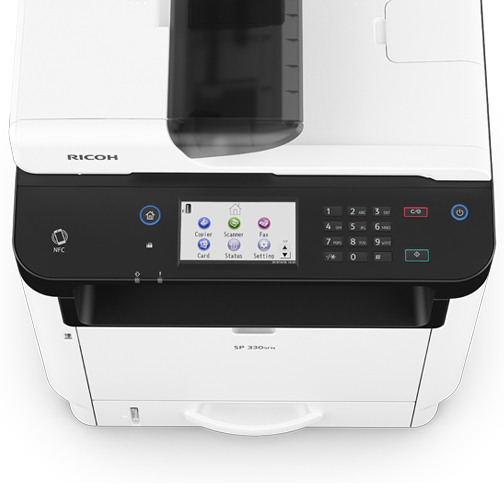 Dieses 4-in-1 Multifunktionssystem von Ricoh lässt sich kinderleicht einrichten. Mit dem farbigen 4,3-Zoll-Touch-Bedienfeld sind Bedienung und Wartung sehr benutzerfreundlich. Sämtliche Funktionen, vom Druckverlauf über die Geräteeinstellungen bis hin zu den Netzwerkeinstellungen, sind leicht zu überwachen und zu verwalten. Dank seiner kompakten Stellfläche eignet sich dieses System hervorragend für kleinere Stellplätze. Die 5-GHz-WLAN-Schnittstelle reduziert Engpässe und sorgt für eine stabilere Wireless-Verbindung.